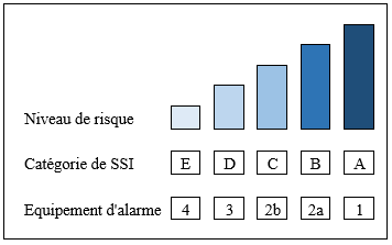 Comme on peut le voir sur le schéma ci-dessus, si votre ERP présente un niveau de risque important et fait partie de la catégorie de SSI A, une alarme de type 1 devra être installée.
